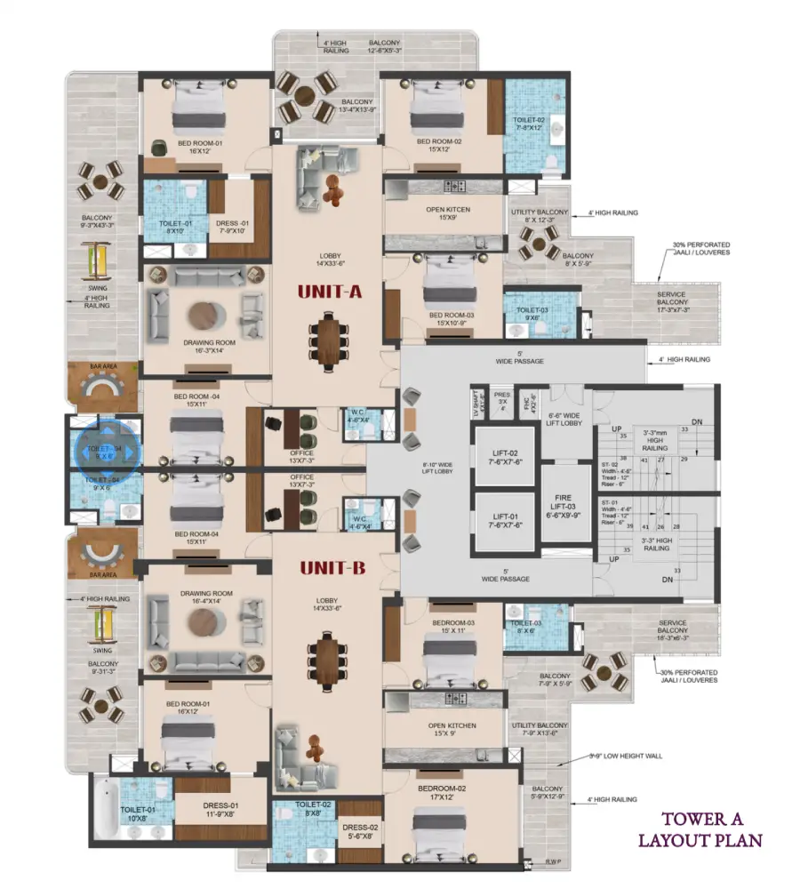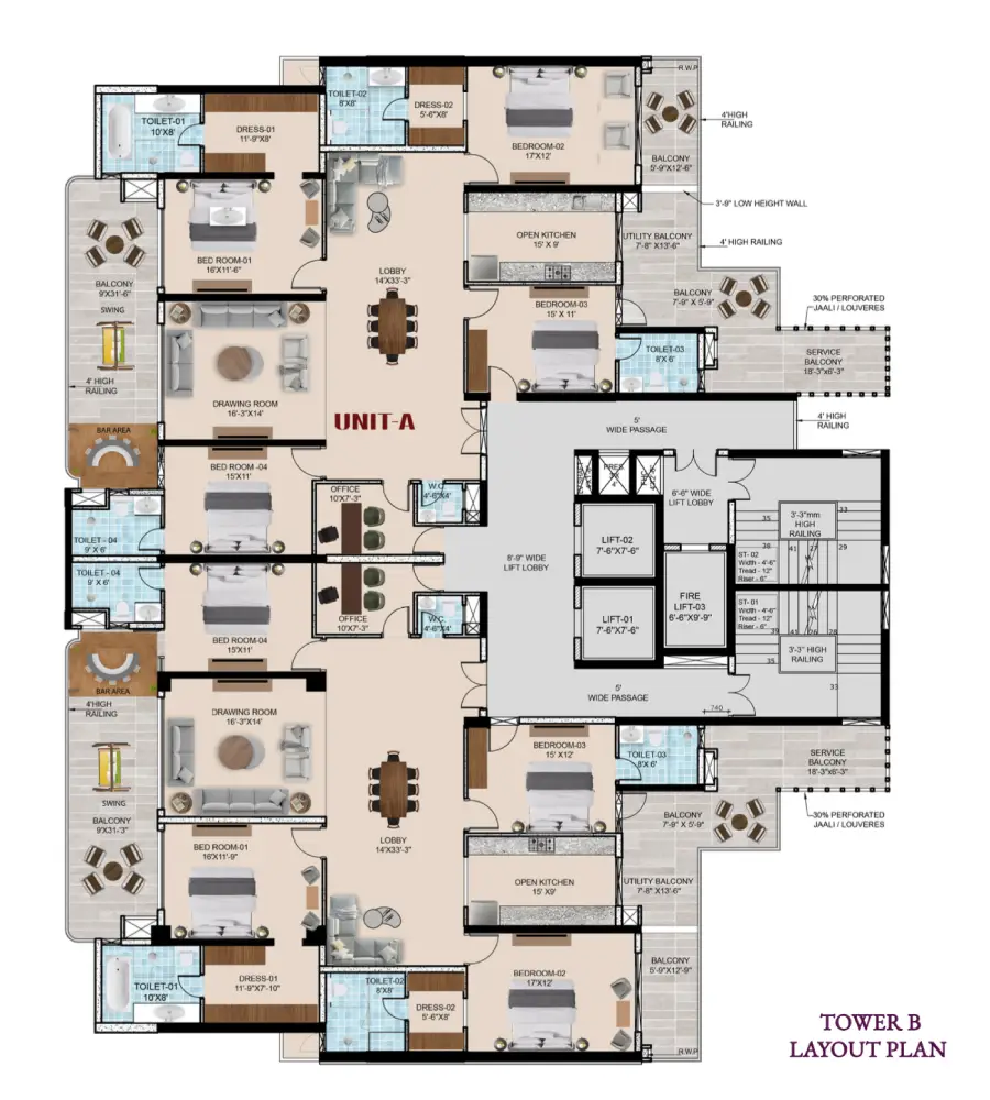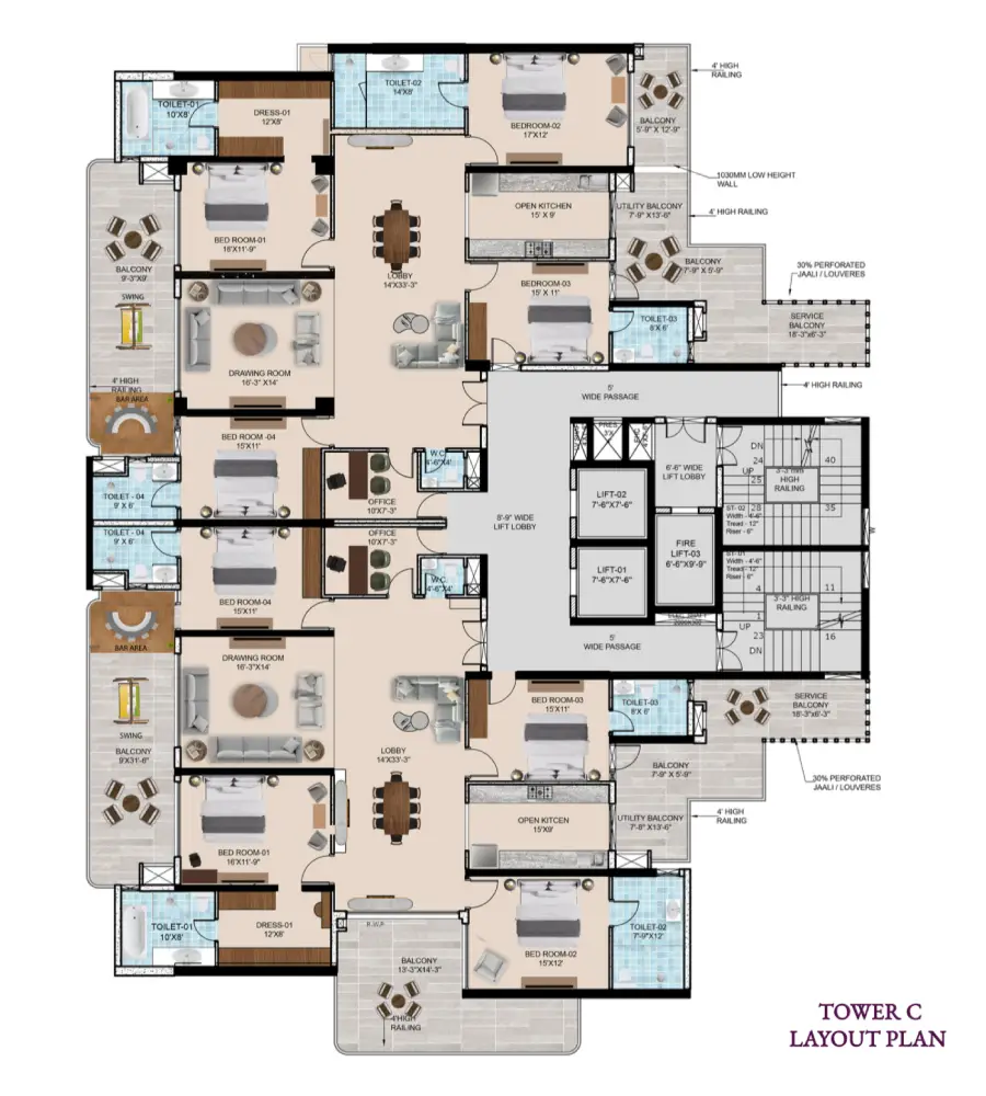 The towers are strategically positioned to provide panoramic views of the Shivalik Hills and the surrounding protected forest belt, blending luxury living with nature’s tranquility. With only 308 apartments across 6 towers, The Tiara offers low-density, high-rise living, ensuring exclusivity and ample space for every family.